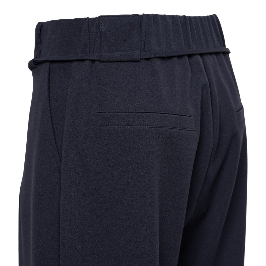 &Co Woman broek Grace PA409. Model GRACE. In de kleur dark blue. De Andcowoman pantalon is gemaakt van een soepelvallende crêpekwaliteit die zorgt voor een luxe uitstraling en prettig draagcomfort. De wijde broekspijpen geven een modieus silhouet en zorgen voor een flatterende pasvorm.