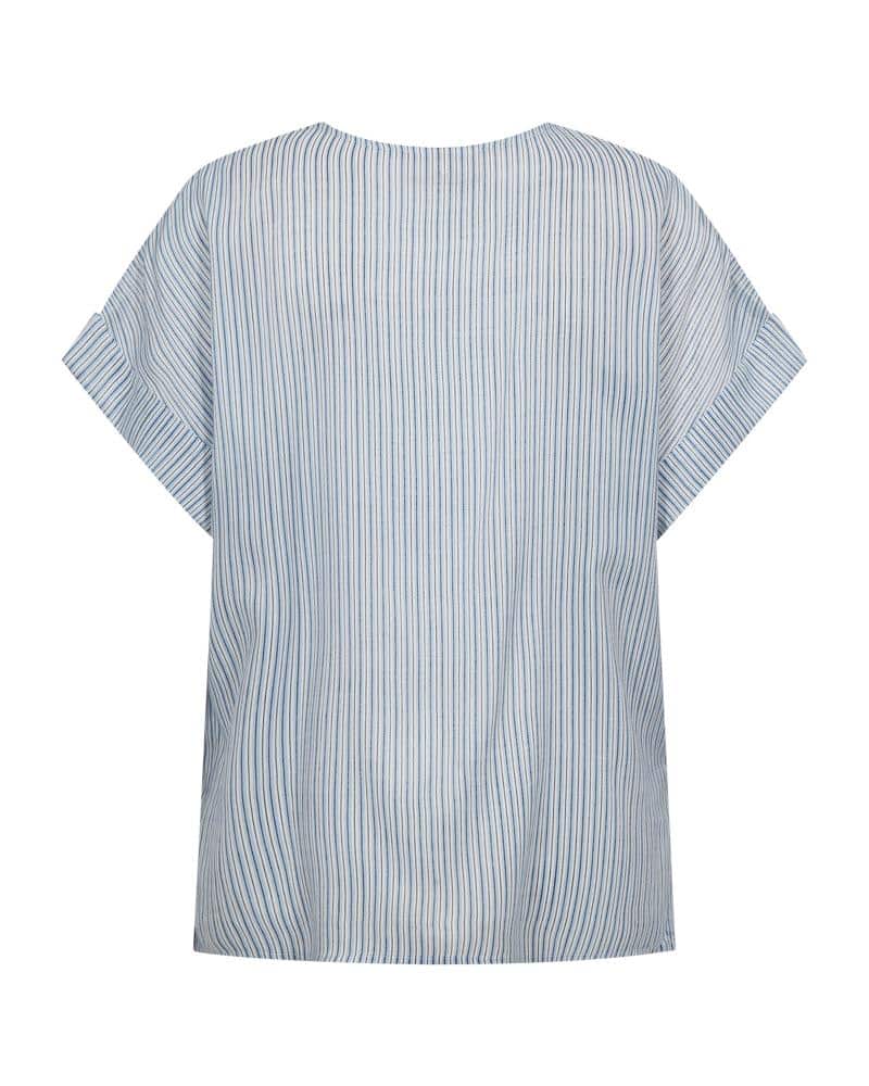 Freequent shirt FQESOLIVA 208170. Model FQESOLIVA-BLOUSE. In de kleur chambray blue. Het shirt is gemaakt van een lichte, soepel vallende stof die prettig aanvoelt op de huid. Het subtiele streeppatroon geeft het geheel een speelse en eigentijdse twist.