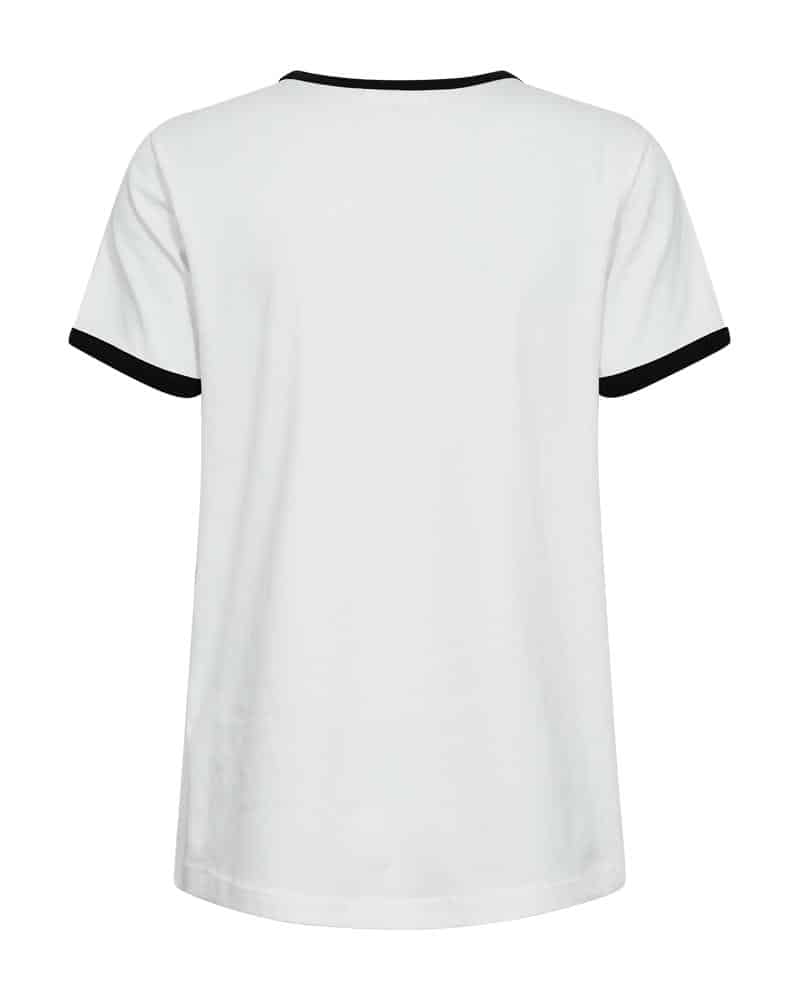 Freequent shirt FQfejal 207658. Model FQFENJAL-TEE. In de kleur star off white/ black. Het shirt is gemaakt van een zachte, organische katoenmix met stretc. Het losvallende pasvorml zorgt voor een ontspannen en moderne pasvorm. De ronde halslijn en korte mouwen geven het shirt een tijdloze basis, terwijl de ribboorden in een contrasterende kleur zorgen voor een speels detail.