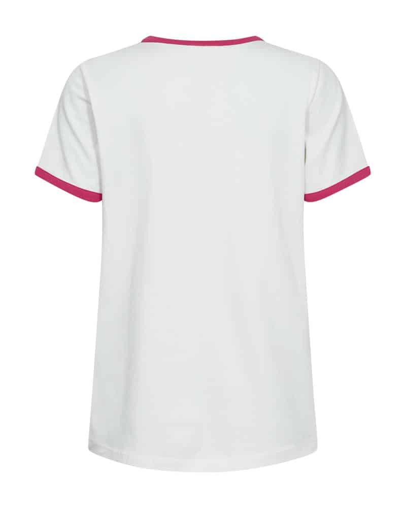 Freequent shirt FQfejal 207658. Model FQFENJAL-TEE. In de kleur star off white/ fuchsia. Het shirt is gemaakt van een zachte, organische katoenmix met stretc. Het losvallende pasvorml zorgt voor een ontspannen en moderne pasvorm. De ronde halslijn en korte mouwen geven het shirt een tijdloze basis, terwijl de ribboorden in een contrasterende kleur zorgen voor een speels detail.