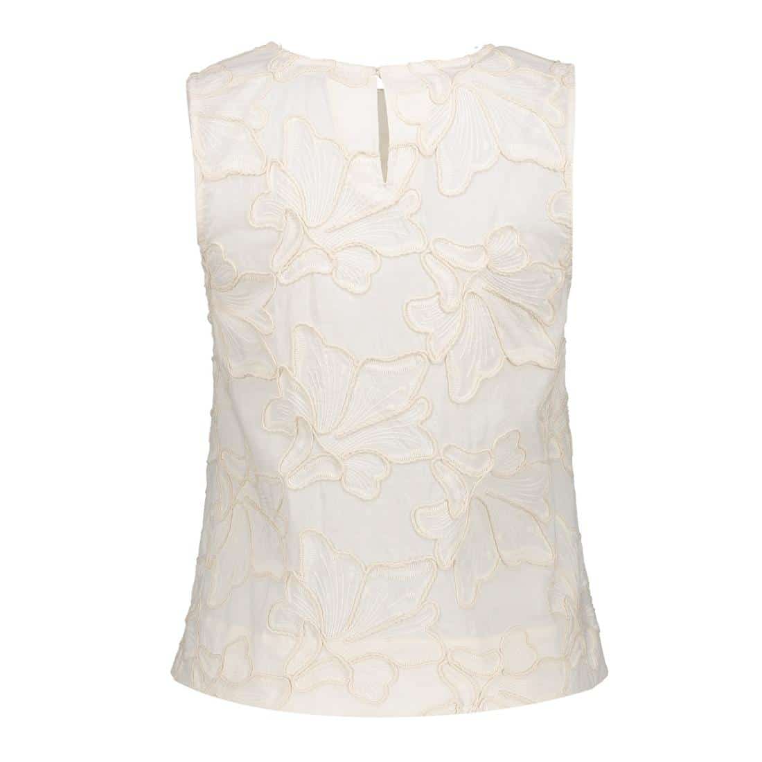Geisha top 63301-10. In de kleur ecru. Deze mouwloze top heeft een prachtige embroidery. De top heeft een ronde hals. Dankzij het gebruik van 100% katoen voelt de stof heerlijk zacht.