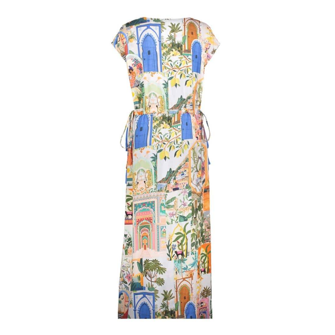 Geisha maxi jurk 67399-20. In de kleur green/blue. Deze mouwloze maxi jurk heef een V-hals en een soepel vallende pasvorm. Dankzij het trekkoord in de taille kun je de jurk eenvoudig naar wens tailleren.