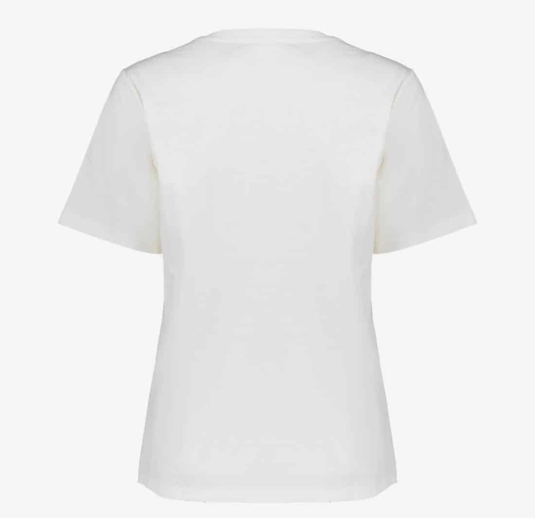 Geisha T-shirt tekst 52595-41. Kleur off-white/coffee. Het aangesloten model met een ronde hoge hals en korte mouwen zorgt voor een moderne en vrouwelijke uitstraling. De chestprint met de tekst ‘New York’ voegt een urban touch toe en maakt het T-shirt een echte blikvanger.