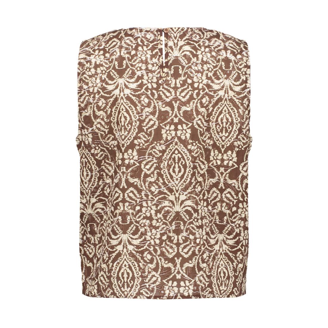 Geisha top print 63388-70. In de kleur brown/light sand. Top met ronde hals en mouwloos design. Opengewerkt, luchtig en ruimvallend voor een comfortabele, zomerse look.