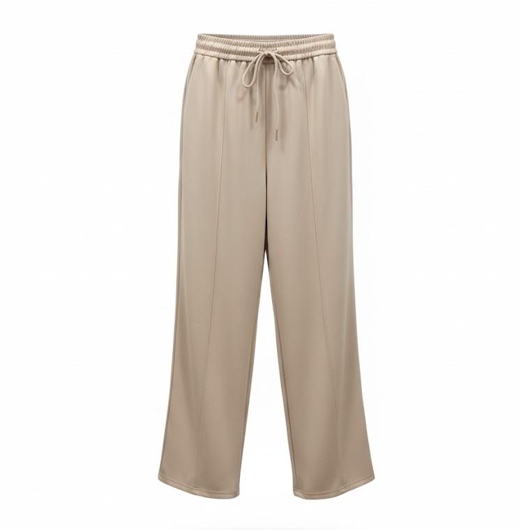 De broek is voorzien van een elastische tailleband met trekkoord, een hoge taille en wijde, lange pijpen. Subtiele naaddetails zorgen voor een eigentijdse look.