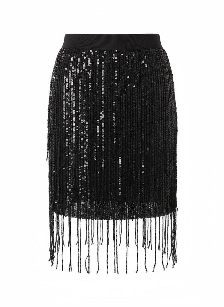 Nouveau Fashion pailletten korte rok. In de kleur zwart. Pailletten rok in zwart met glitter tailleband. Kort model, one size t/m maat L.