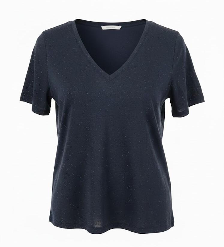 Nouveau fashion shirt glitter. In de kleur navy. Glitter shirt met V-hals en korte mouwen. Licht doorschijnende stof van katoen voor een stijlvolle look.