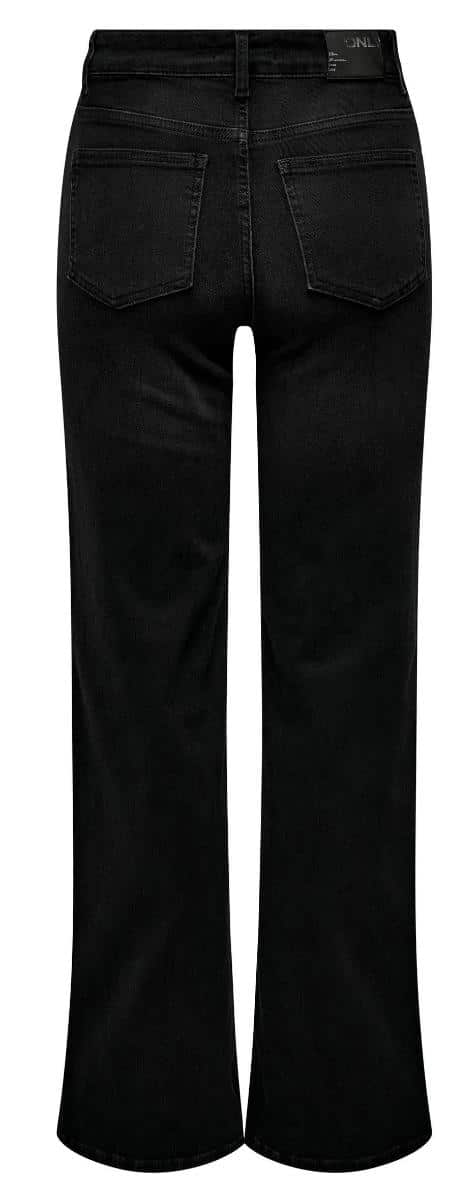 Only zwarte jeans met wijde pijpen.Is een high waist model.Heeft een knoop en ritssluiting en 5 zakken.Is van strechty stof voor een comfortable pasvorm.Leuk te combineren met een shirt op top.Lengtemaat 34.