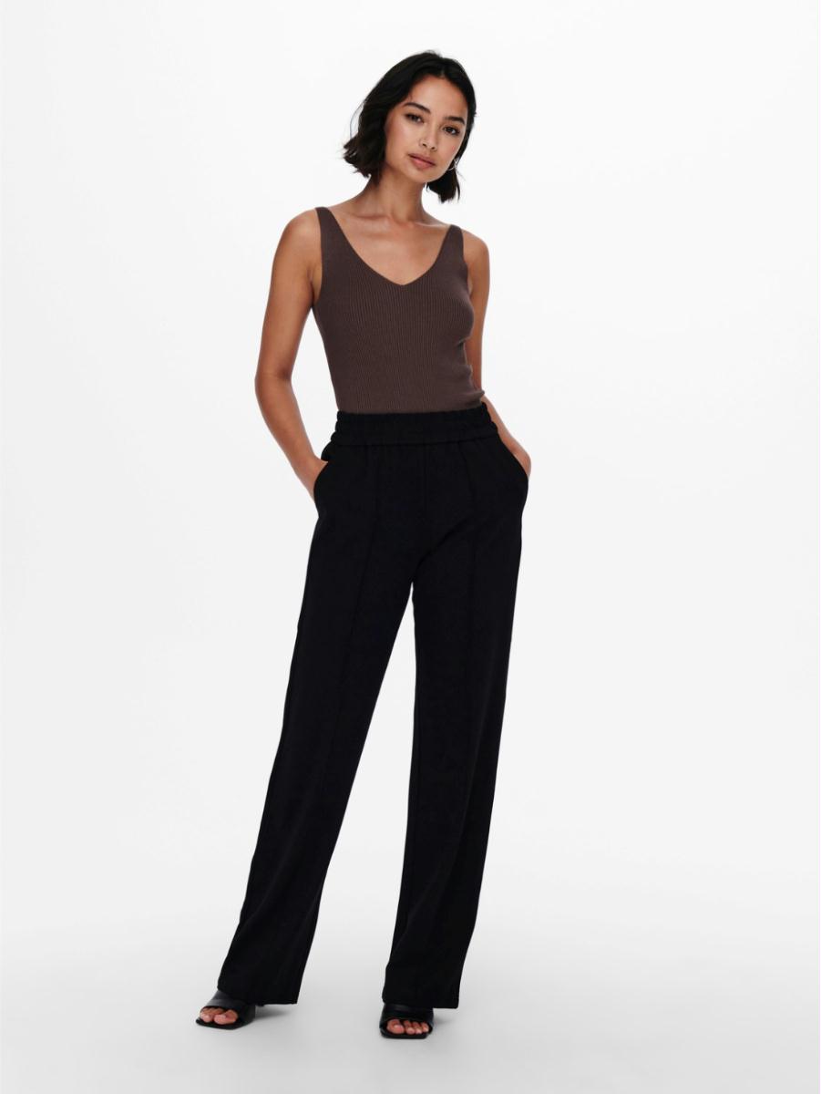 Only poptrash broek 15235076. Model ONLPOPTRASH-SUKI LIFE PANT NOOS. In de kleur zwart. De Only Poptrash broek (artikelnummer 15235076) is dé perfecte combinatie van comfort en stijl. Dit populaire model, ONLPOPTRASH-SUKI LIFE PANT NOOS, is uitgevoerd in klassiek zwart en gemaakt van een heerlijk rekbaar materiaal. De broek heeft een elastische, gesmokte tailleband waardoor hij altijd mooi aansluit en extra comfortabel zit.