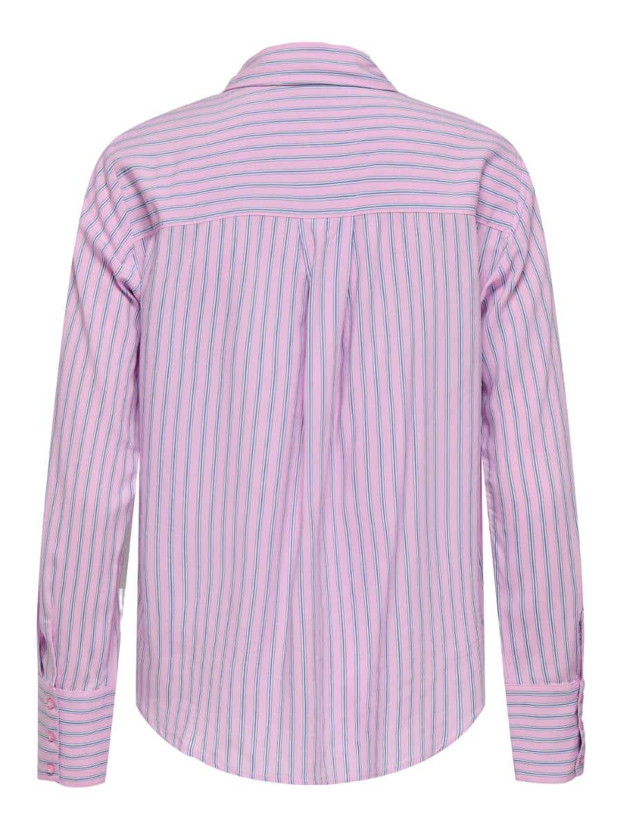 Only blouse ONLBERIT 15320243. Model ONLBERIT LIFE L/S SHIRT NOOS. In de kleur bonbon. Een stijlvolle blouse met streeppatroon, kraag en lange mouwen in een comfortabele regular fit.