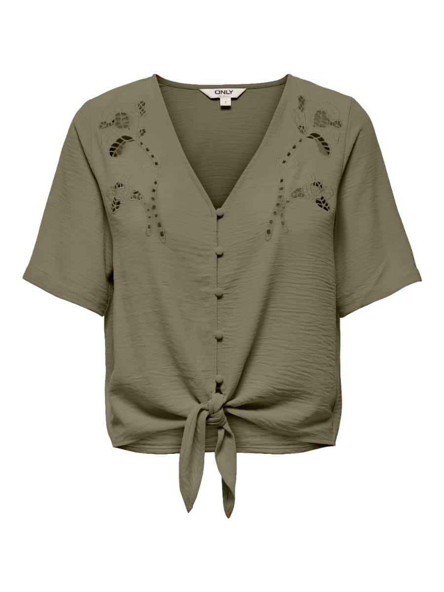 Het geknoopte detail aan de voorkant zorgt voor een subtiel accent in de taille en geeft de blouse een flatterende pasvorm. De verfijnde embroidery maakt dit item extra bijzonder. Dankzij de regular fit zit de blouse comfortabel en valt hij mooi om het lichaam.