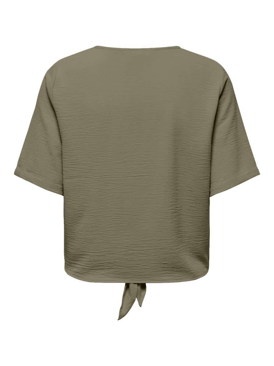 Only blouse ONLEVALOU 15371083. Model ONLEVALOU METTE 2/4 KNOT TOP. In de kleur mermaid. De blouse met V-hals en 2/4 mouwen geeft het een luchtige en vrouwelijke uitstraling.
