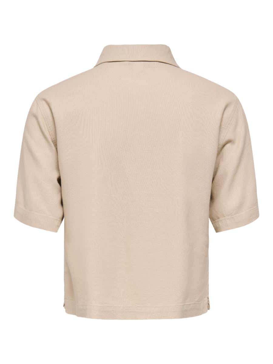 Only blouse ONLGOA 15363701. Model ONLGOA S/S LINEN BL SHIRT CC PNT. In de kleur oxford tan. De blouse heeft een Boxy Fit. De stof, een hoogwaardige mix van 70% viscose en 30% linnen, biedt het ademende vermogen van linnen met de zachtheid en soepelheid van viscose.