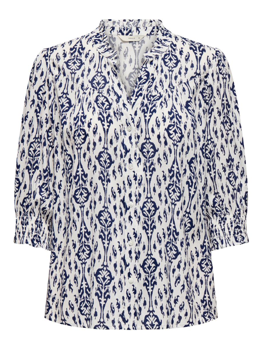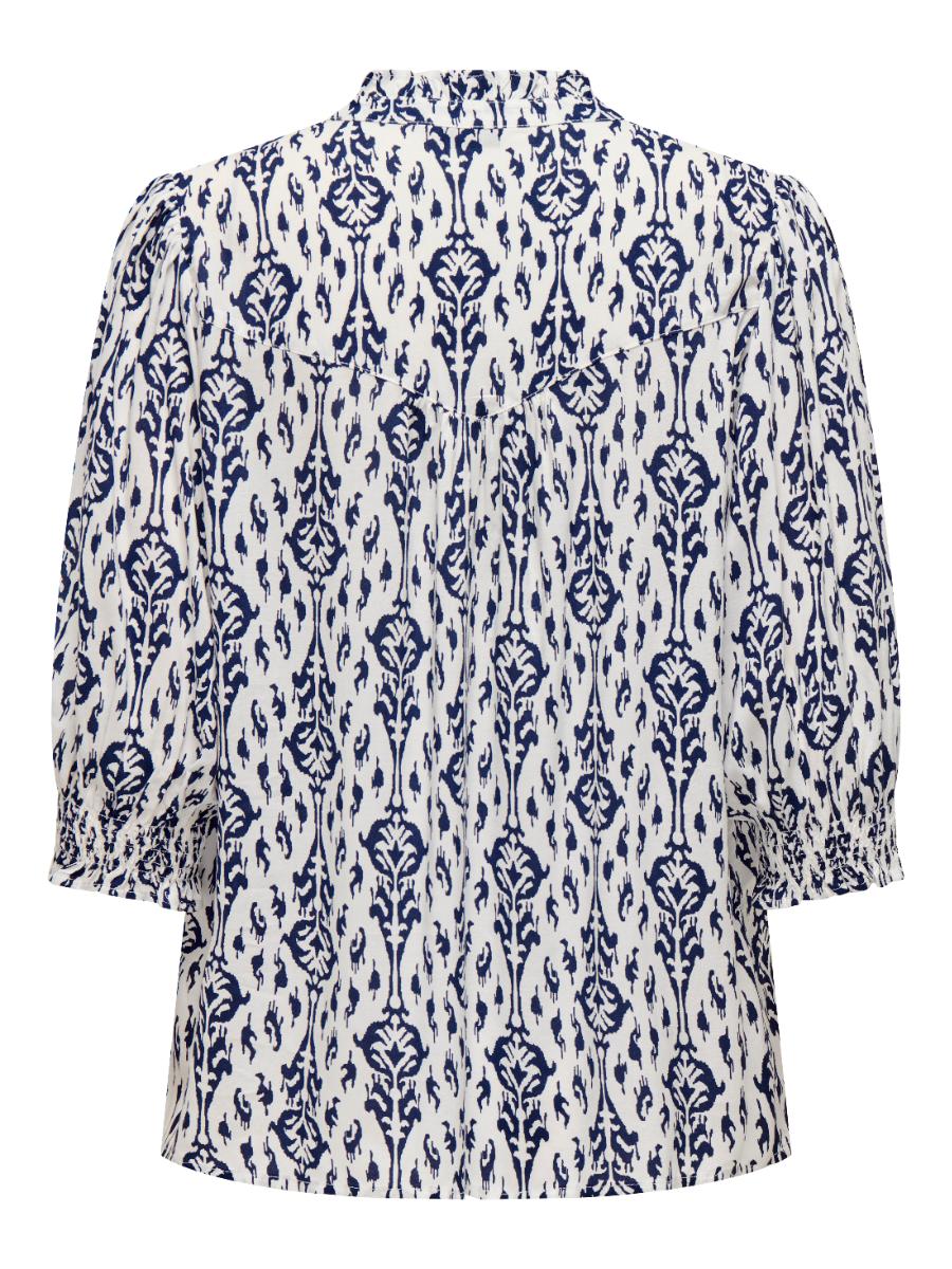 Only blouse ONLRAYA 15332997. Model ONLRAYA 3/4 SHIRT WVN NOOS. In de kleur night sky. Een elegante en vrouwelijke damesblouse in de diepe kleur night sky. De donkerblauwe tint in combinatie met de speelse print zorgt voor een stijlvolle en veelzijdige look.