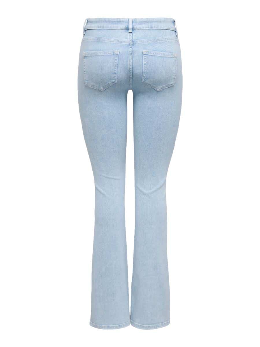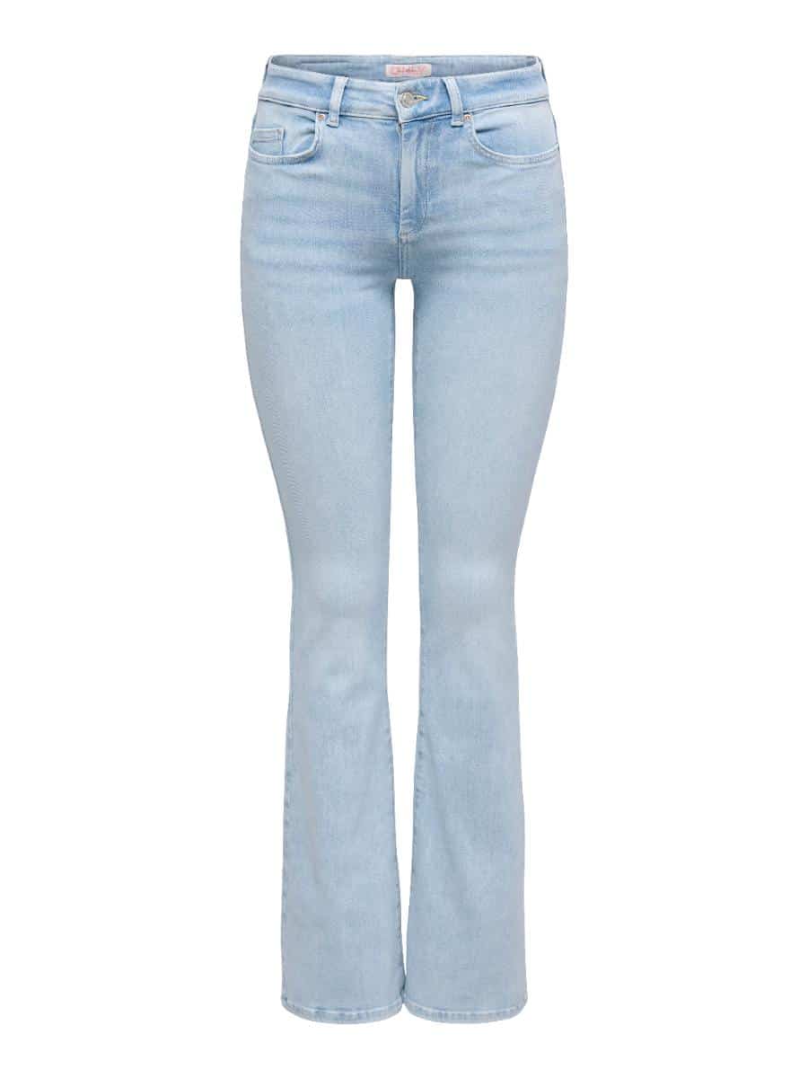 Only flared jeans 15363225. Model ONLBLUSH MID FLARED DNM CRO495 NOOS. Een trendy damesjeans in de kleur light blue denim. Deze flared spijkerbroek combineert een tijdloze blauwe wassing met een vrouwelijke, uitlopende pijp voor een flatterend silhouet.