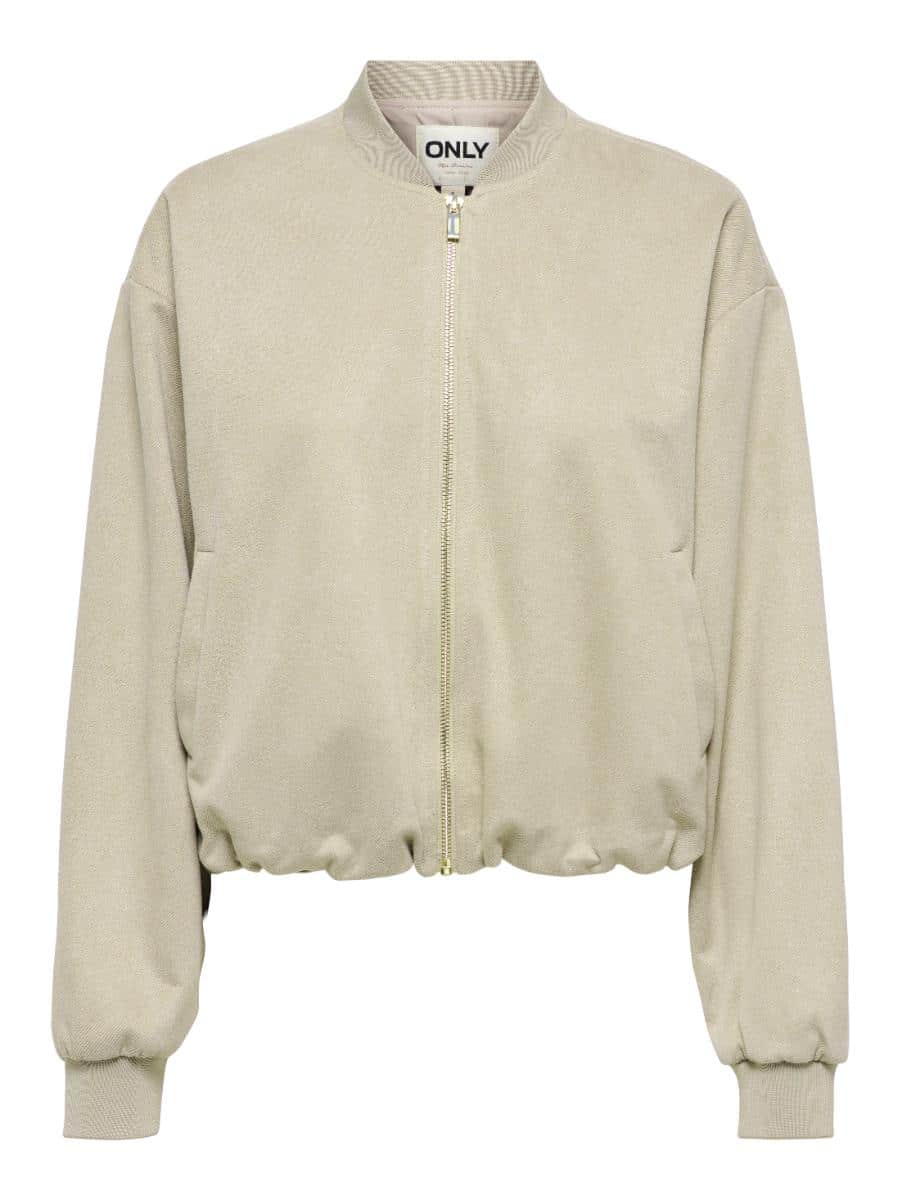 Only jack ONLMAVI 1536410. Model ONLMAVI LIFE LS FAUX SUEDE BOMBER CC PNT. In de kleur pure cashmere. Een trendy en vrouwelijk bomberjas in de stijlvolle kleur burnished lilac. Dit korte jack van faux suede geeft jouw outfit direct een zachte, luxe uitstraling met een moderne twist.