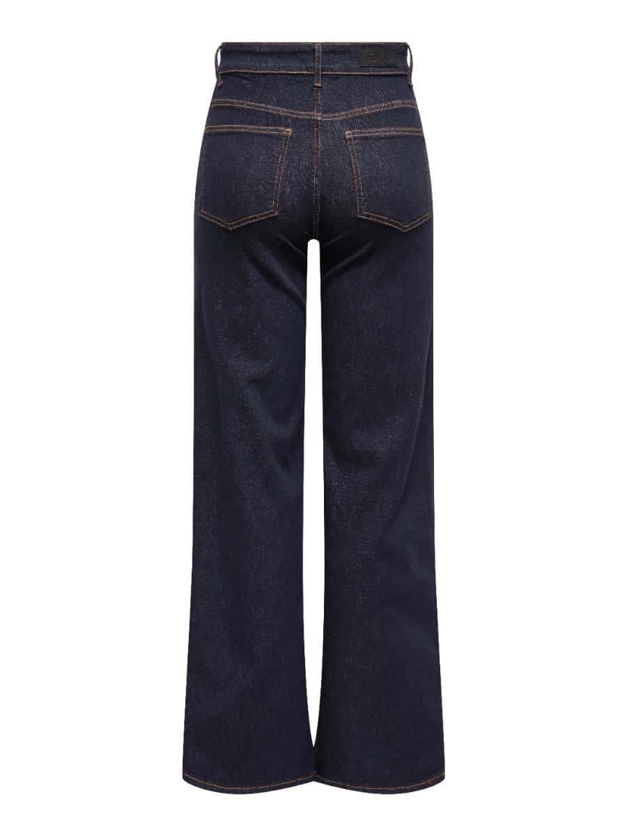 Only jeans wide leg ONLMADISON. Model ONLMADISON BLUSH HW WIDE DNM. Kleur dark blue denim. Deze high waist jeans met een wide fit biedt ultiem comfort. De wijd uitlopende pijpen geven de denim broek een trendy, retro vibe, terwijl de knoop en ritssluiting zorgen voor een strakke, comfortabele pasvorm.