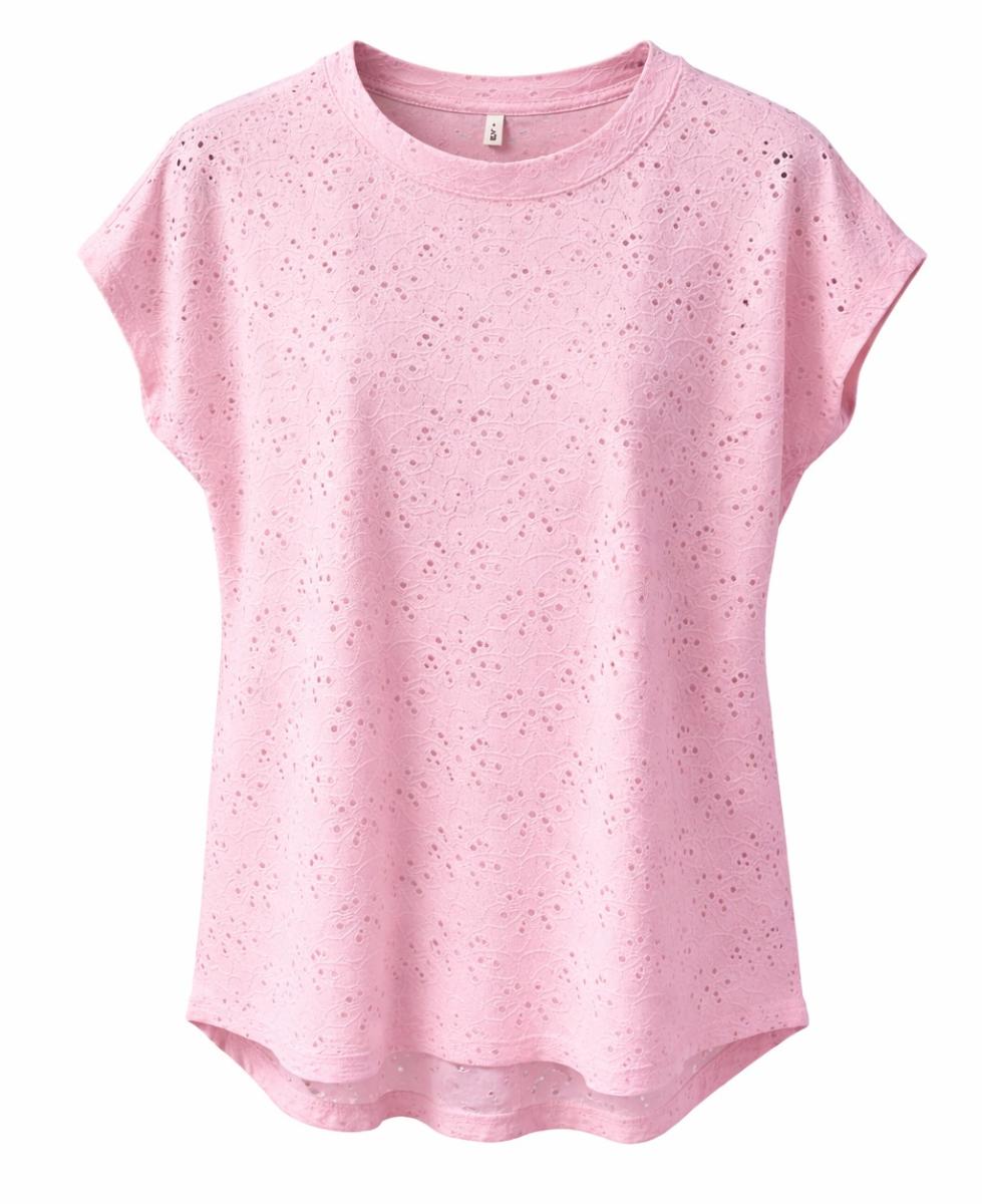 Only shirt ONLSMILLA 15231005. Model ONLSMILLA S/S TOP JRS NOOS. In de kleur roze. Het shirt heeft een ronde hals en korte mouwen voor een tijdloze uitstraling. Het opengewerkte patroon geeft een speels en luchtig effect, terwijl de langere achterkant zorgt voor een trendy, nonchalante fit die mooi langs het lichaam valt.