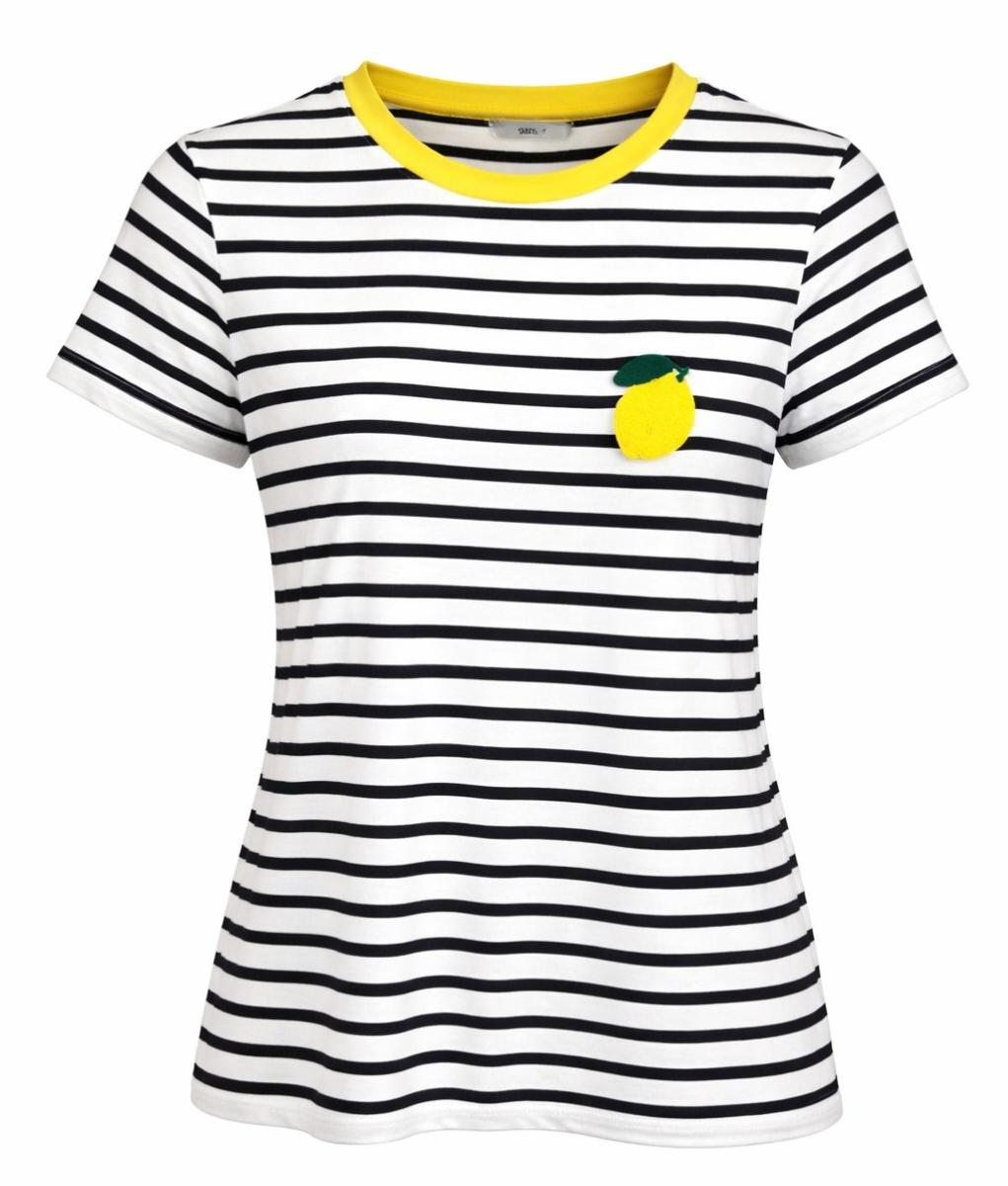 Het subtiel geborduurde citroen op de borst maakt het design helemaal af. Dankzij de regular fit en de zachte viscosemix met stretch draagt het T-shirt heerlijk comfortabel en is het perfect te combineren met jeans, shorts of een rok voor een casual outfit.